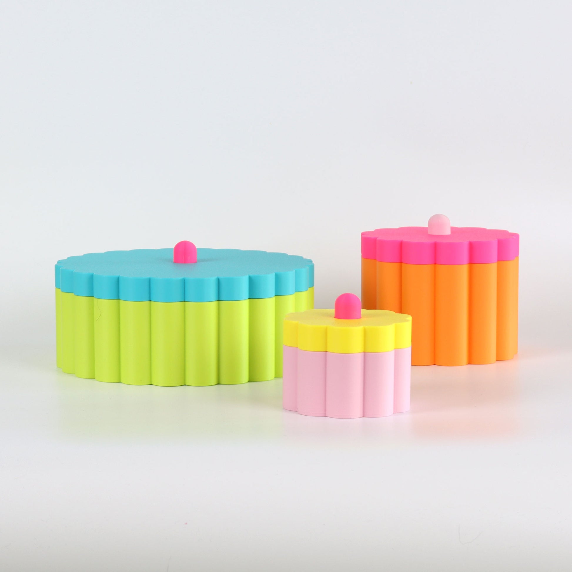 What makes this candy jar special are the 3 different colors, together with the unique shape they give a playful character to the candy jar. Choose one of the variants or put together a candy jar yourself.