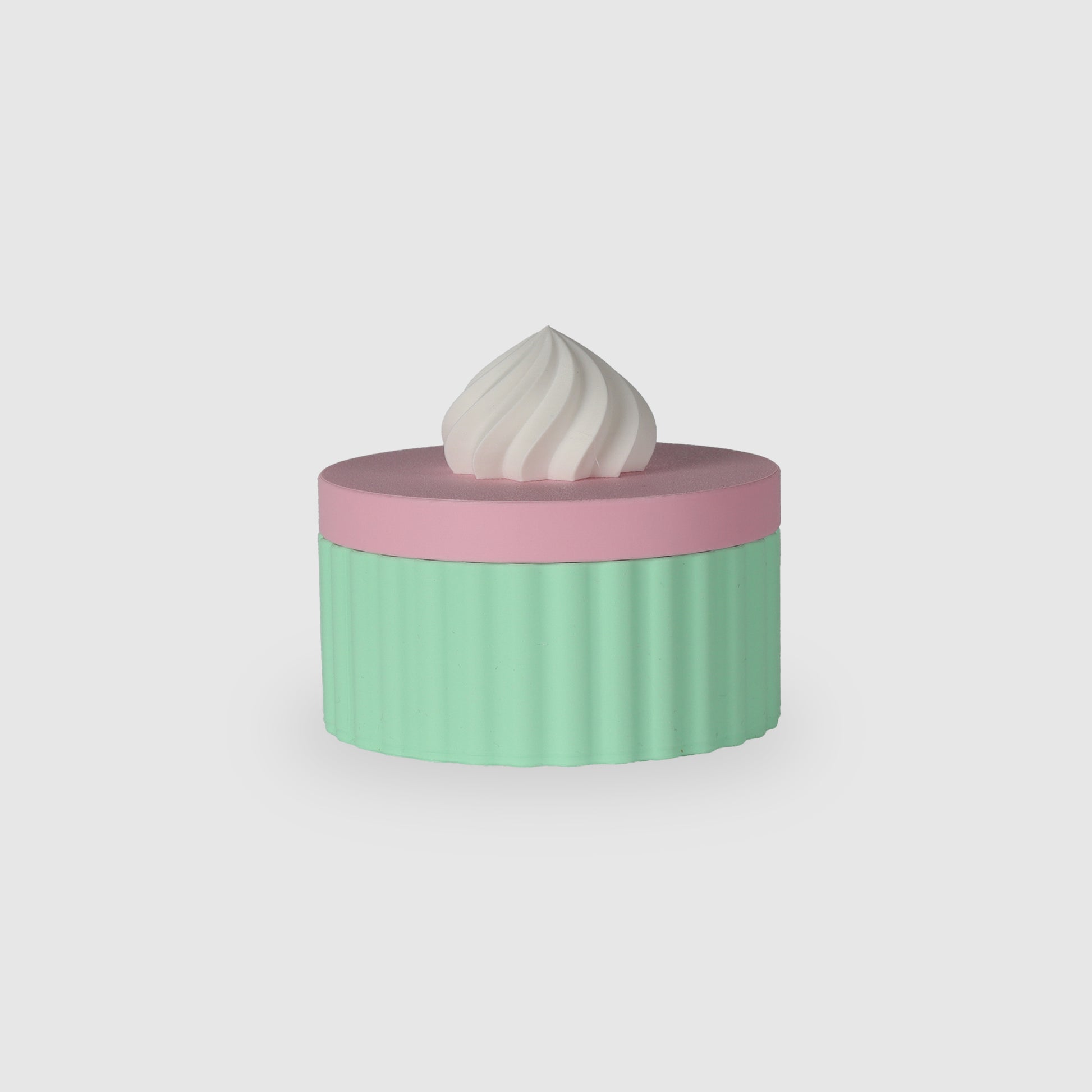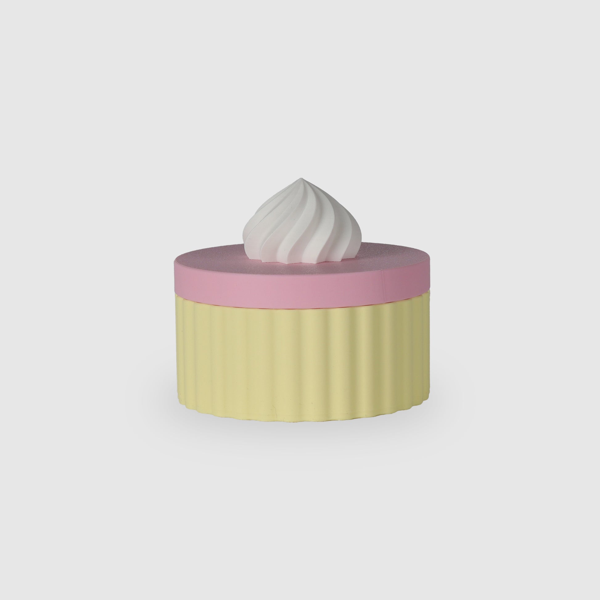 Cette petite boîte est littéralement à croquer ! Avec une grande touche de crème fouettée sur le couvercle, elle attire vraiment le regard. Parfaite pour conserver de petits trésors ou simplement comme pièce décorative. Sans la touche, la boîte mesure 10x6 cm.